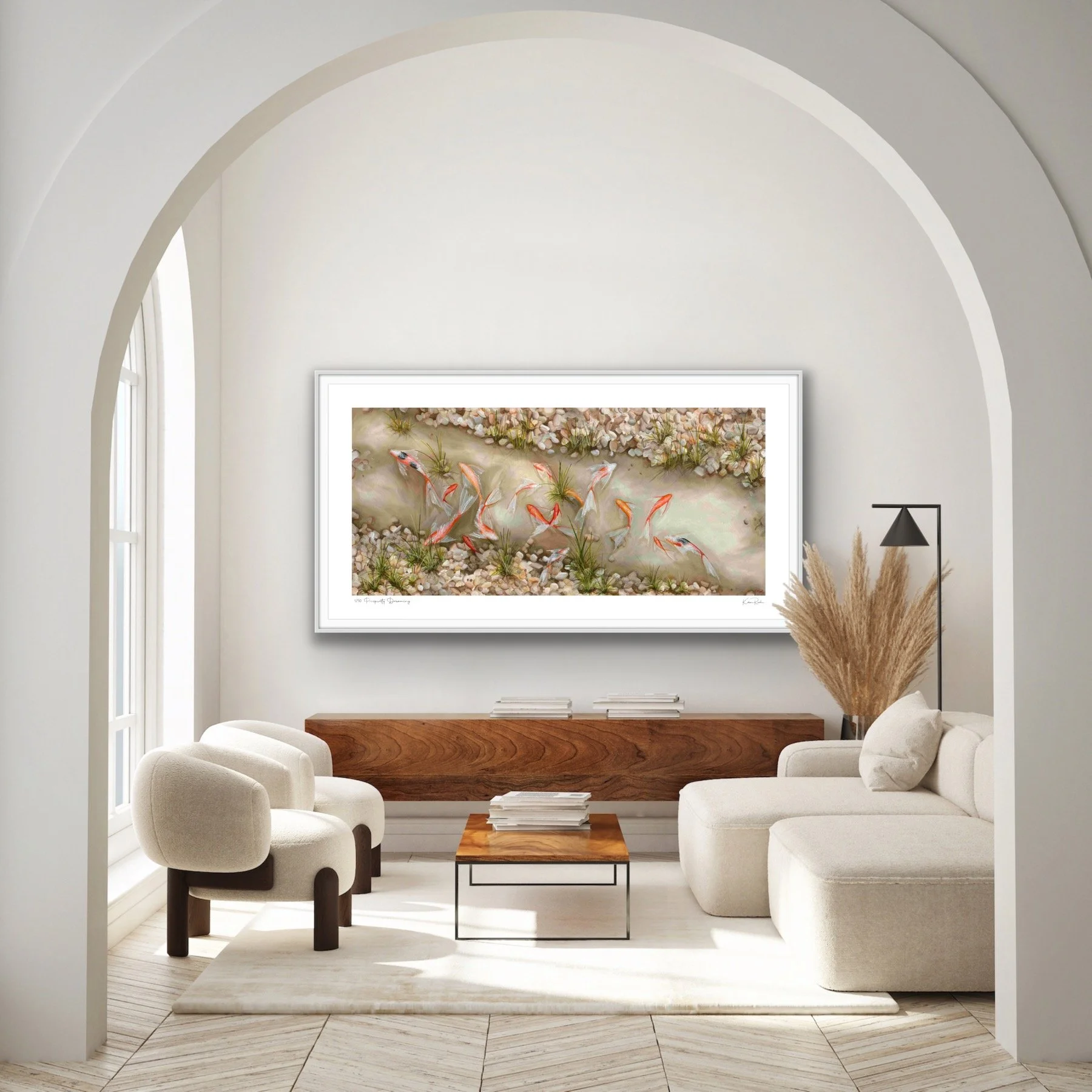Katrina’s iconic Prosperity Series continues its evolution with the introduction of an exclusive collection of archival, Fine Art Guild–certified, limited edition neo-lithographs. This refined printmaking medium offers a fresh perspective on the series’ celebrated themes—movement, harmony, and the interplay between water and life—while preserving the integrity and emotional depth of the originals.