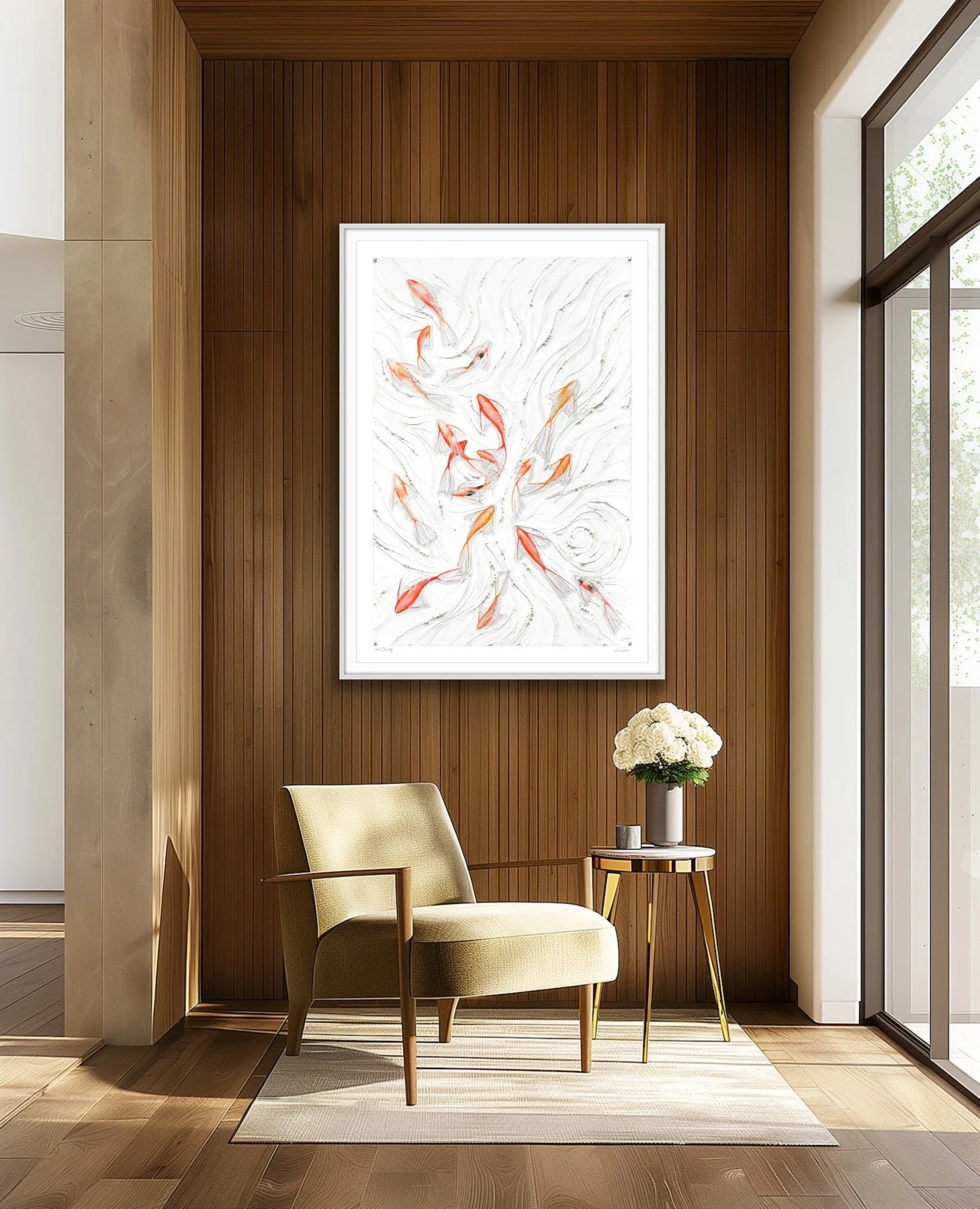 Katrina’s iconic Prosperity Series continues its evolution with the introduction of an exclusive collection of archival, Fine Art Guild–certified, limited edition neo lithographs. This refined printmaking medium offers a fresh perspective on the series’ celebrated themes—movement, harmony, and the interplay between water and life—while preserving the integrity and emotional depth of the originals.